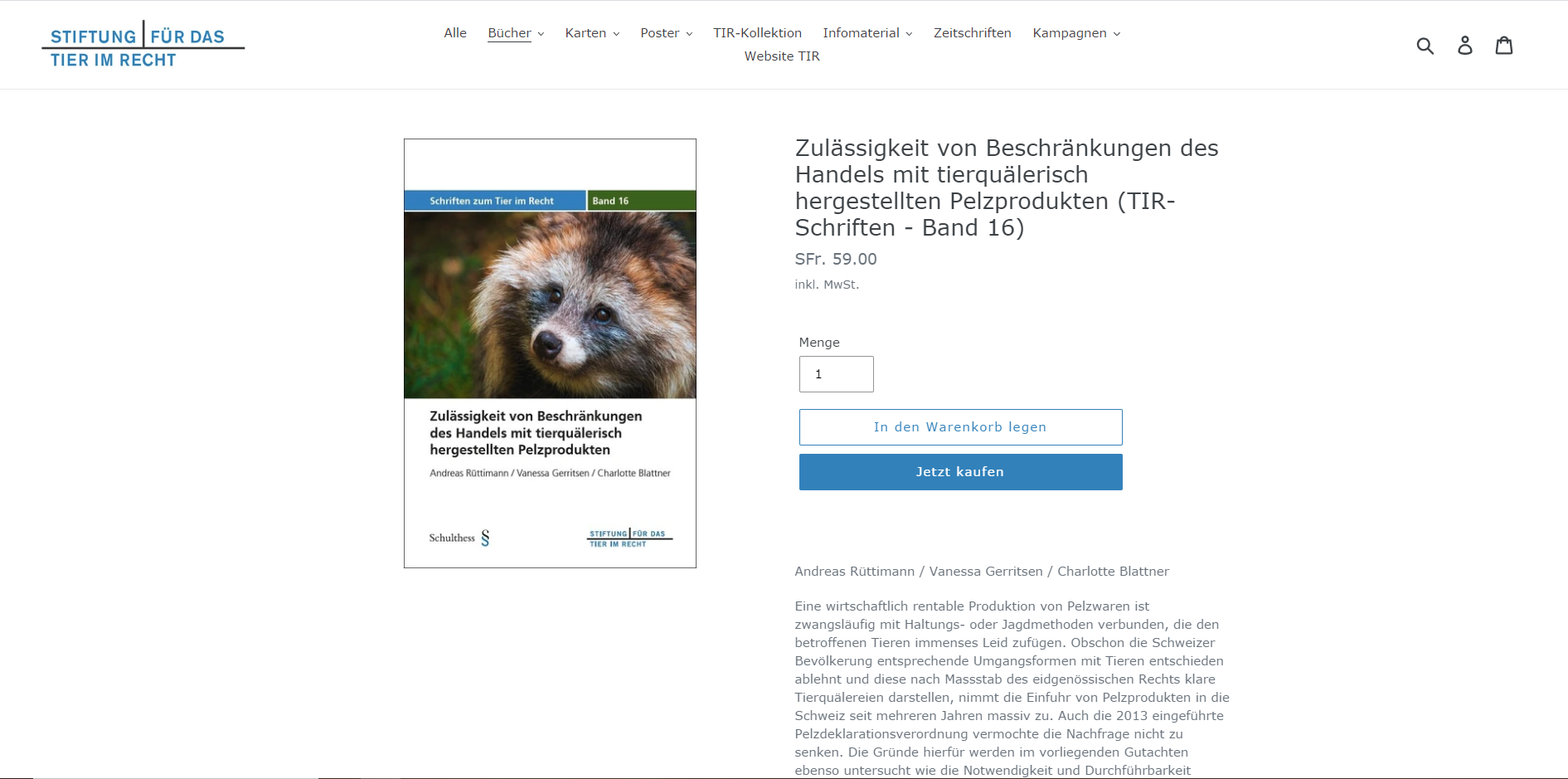 Veröffentlichung auf dem Cover von "Zulässigkeit von Beschränkungen des Handels mit tierquälerisch hergestellten Pelzprodukten (TIR-Schriften - Band 16)" von 2017