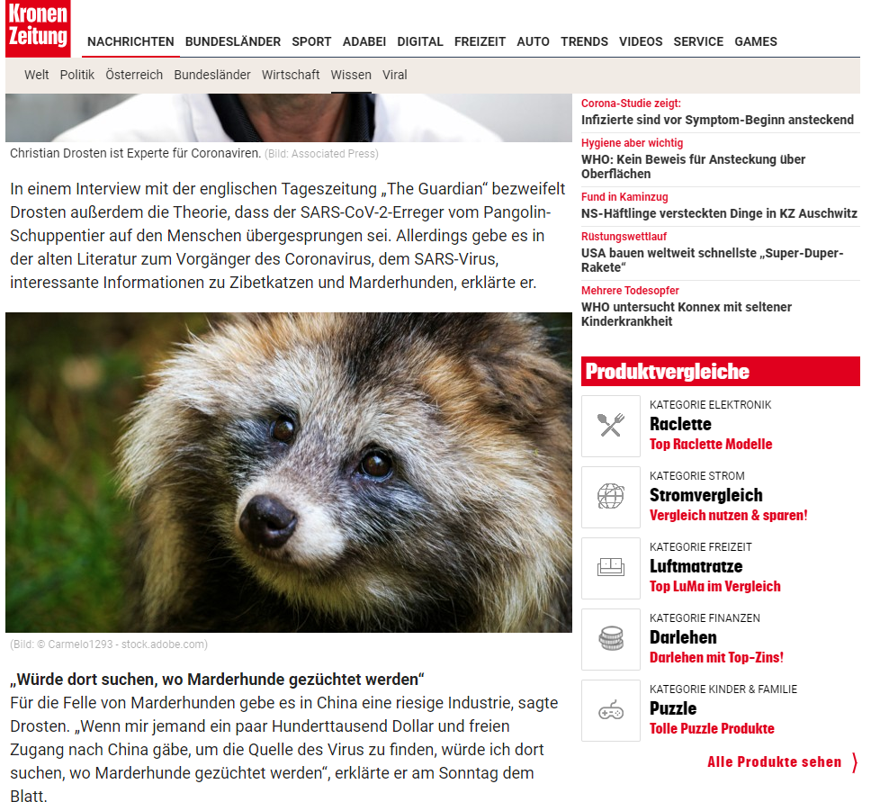 Veröffentlichung auf Krone Zeitung am 27.04.2020